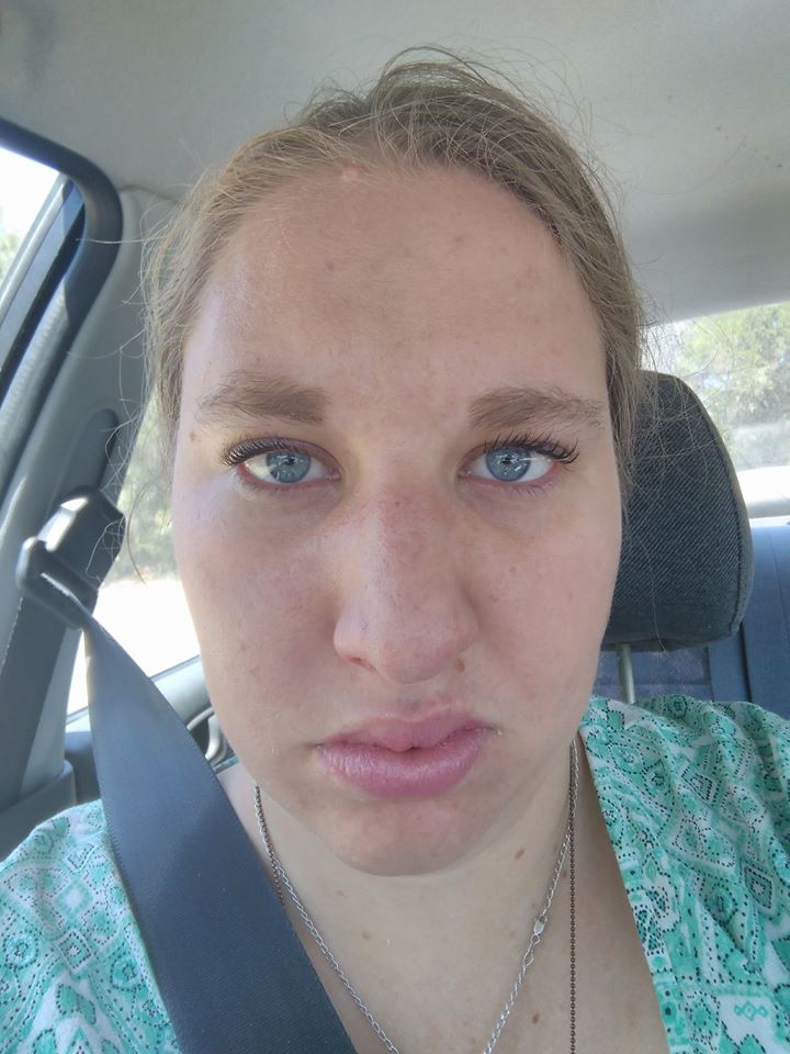 This photo was taken the next day after the biggest panic attack I have had in years. I look broken. all the make up that I had put on in the morning had been washed away with my tears, my face is puffy and my heart is still racing. I'm in my car in my driveway after driving home from campus after the attack.